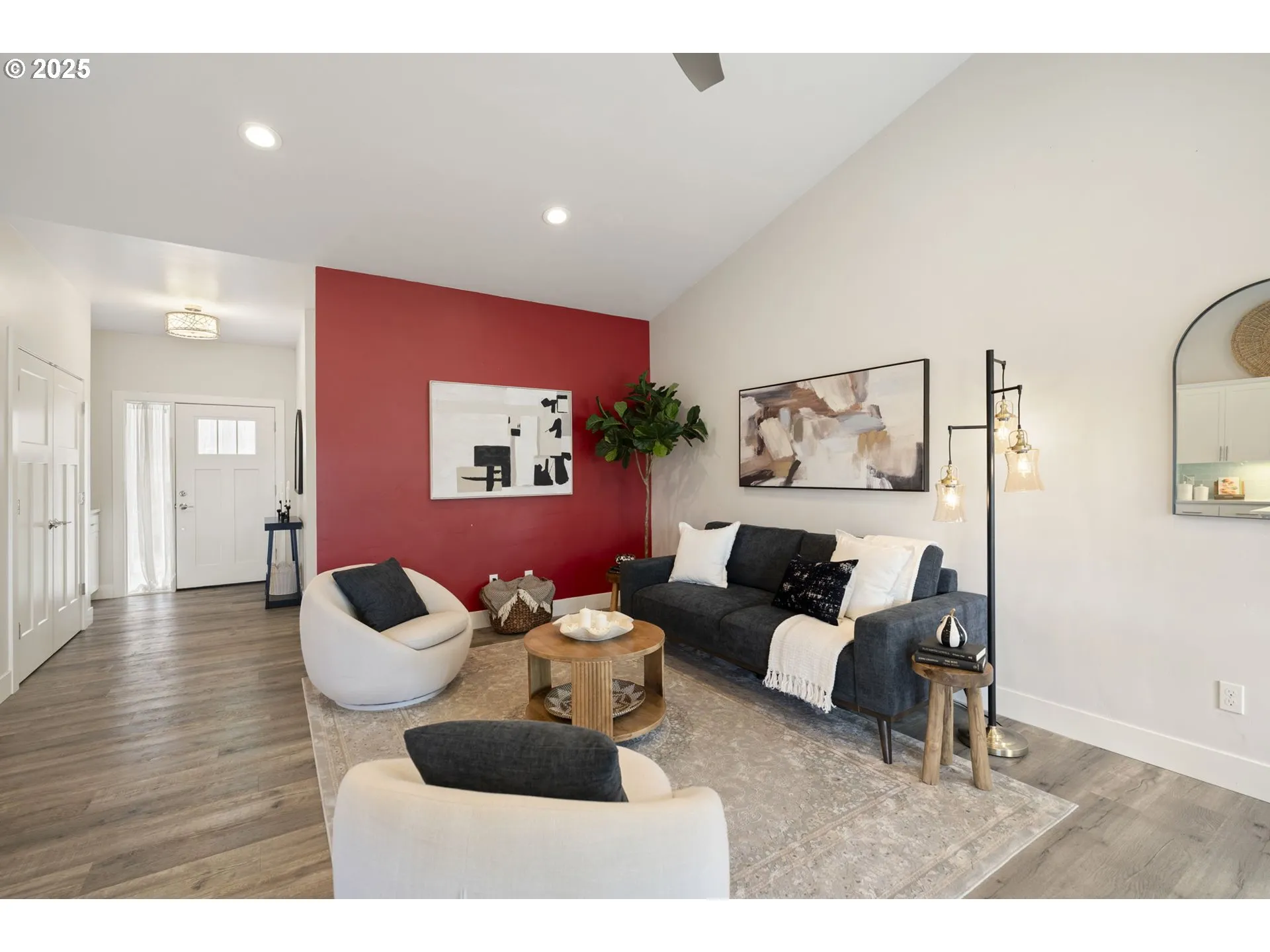 Looking for quiet living with a touch of luxury? This 3-bed, 2-bath gem in Lowell delivers natural light, custom kitchen touches, and a serene setting near Dexter Lake. Built in 2018, the home offers 1,425 sq ft of single-level, open-concept living with tall ceilings and oversized windows—including seasonal lake views from the dining table. The thoughtfully designed kitchen is a true standout, featuring Samsung appliances, a pot filler, instant hot water spout, filtered water, quiet-close cabinetry, and a slide-out pantry. Built-ins at the entry, a spacious coat closet, and quality finishes throughout make this home both stylish and functional. Outside, enjoy peaceful mountain views, colorful sunsets, and glimpses of the lake—all from your own yard. The home is located just minutes from Dexter Lake for boating, fishing, and recreation, and is a short stroll to Rolling Rock Park—home to the annual Blackberry Jam Festival each July. Perfect for anyone seeking a slower pace without being far from Eugene and Springfield, this home offers the ideal blend of comfort, convenience, and small-town charm.