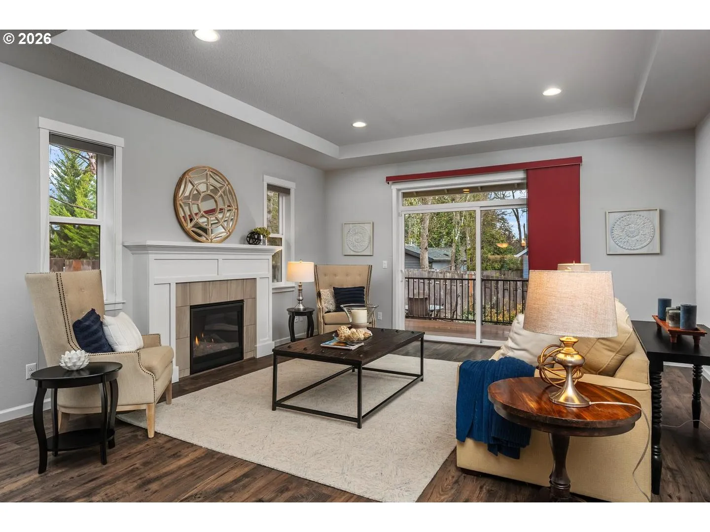 Rare single-level living in Milwaukie, Oregon! One of only 4 single-level homes in the neighborhood, this thoughtfully upgraded 1,870 sq ft home offers 3 beds, 2 baths, and flexible space that can convert to a 4th bedroom or remain a private office suite. Open great room with high ceilings, gas fireplace, and luxury vinyl plank flooring throughout. Beautiful kitchen with quartz island, walk-in pantry, and premium Bosch induction range (gas line available). Designed for comfort and efficiency with a 96% efficient furnace, on-demand water heater, whole-house generator, central vacuum, and motion lighting. Spacious primary suite with walk-in closet and linen storage. Enjoy Trex decking, gas-plumbed patio, fenced easy-care yard, and rose-lined landscaping backing to a quiet private alley. HOA $51/month. Move-in ready and meticulously maintained.