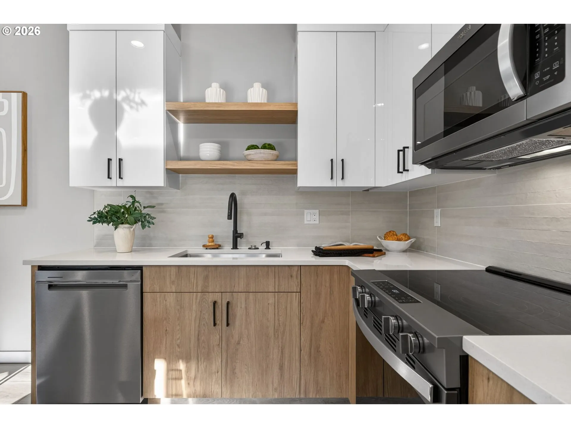 No HOA! End unit! Just completed top notch new construction townhome in desirable neighborhood! 3 bedrooms and 2.5 bathrooms. 9ft ceilings downstairs and upstairs. Stylish high-end finishes and premium quality! High efficiency ductless mini-split system with heating & cooling and heat pump water heater. Open and modern floorplan with open living area including an electric fireplace. Quartz countertops, water resistant laminate floors, high end appliances, and beautiful tile work. Low maintenance yard with patio. 30 amp ev charger outlet in garage. No shared walls, each unit is structurally independent, and has its own 2×6 wall separated by 1 inch air gap. [Home Energy Score = 10. HES Report at https://rpt.greenbuildingregistry.com/hes/OR10243372]
