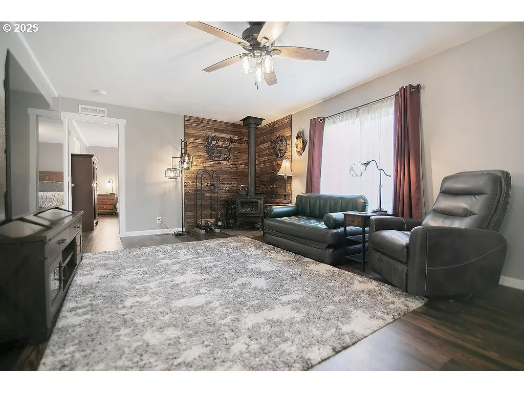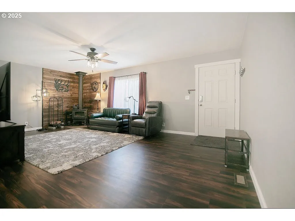 Over 5 ACRES of Land — 1 Level Home — 3 Bedroom / 2 Bathroom — 1492 Sqft — Living Room w/ Woodstove — Kitchen w/ Stainless Appliances — Island w/ Eating Area — Plus Dining Area — Primary Bedroom w/ Full Bath & Walk-in Closet — 2nd & 3rd Bedroom have Walk-in Closets — Laundry Room — Forced Air Heat Pump & A/C — Vinyl Windows — LVP Flooring Throughout — HardiPlank Siding — Deck — Garden Space — Plenty of Yard — RV Parking — Trees — 2 Sheds — Fruit Trees — Private — Private Well — Septic System — Approximately 1 Hour to Vancouver/PDX Areas — Close to Year Round Recreation Apportunities