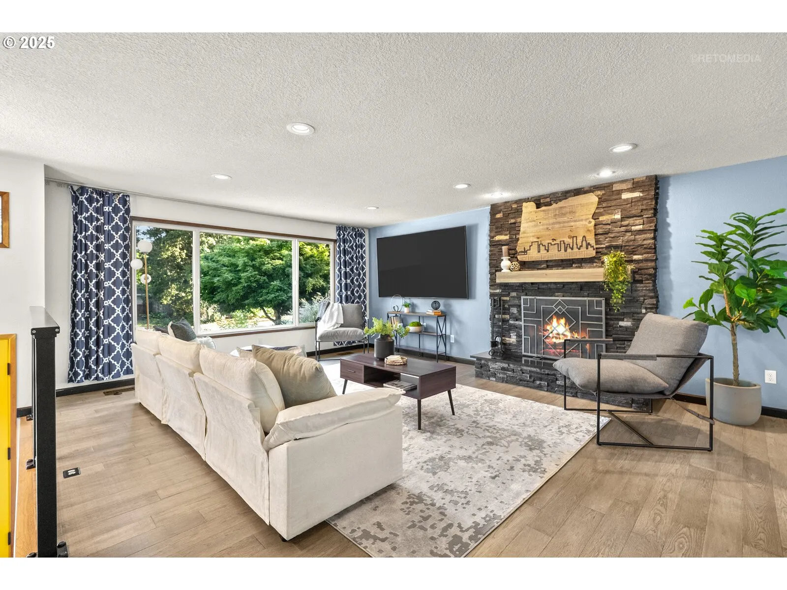 Discover a hidden gem on a quiet Sherwood Forest cul-de-sac lane! This 3,059 SF home blends welcoming charm with modern updates, fantastic curb appeal, peaceful treetop views, and sunset skies. Come inside through the sunny double-door entry, where a statement light fixture and suspension-rail staircase set the tone for this flexible, spacious layout. Upstairs, the living room showcases a stacked stone fireplace and a picture window that fills the space with natural light. The dining area connects seamlessly to the kitchen and expansive deck, creating effortless indoor-outdoor flow. The kitchen balances style and function with warm wood cabinetry, granite counters, a full-height tile backsplash, and stainless steel appliances. The primary suite offers a calm retreat with serene views and an ensuite bath, while two additional bedrooms and a stylishly updated hall bath provide options for family or guests. Downstairs, cozy up by the brick fireplace in the family room or host game night in the adjoining sitting area. A fourth bedroom and full bath are tucked away for privacy, and the fifth bedroom, complete with French doors, a wood accent wall, and built-ins, adds even more character. A flexible bonus space, large laundry room, and tons of storage are perfect for hobbies and projects. Outside, the expansive composite deck with iron railing is where you’ll enjoy quiet territorial views and plenty of room to entertain! Gather around the fire pit, play in the yard, or relax on the patio! The oversized two-car garage and extra parking pad are perfect for an RV, boat, or additional vehicles. In addition to the already spacious homesite, an 8,212 SF easement stays with the property giving you even more room to roam, garden, or simply spread out. With air conditioning, a newer roof, and a well-maintained exterior, this home is move-in ready and the fantastic Gladstone location convenient parks, schools, shopping, restaurants, and scenic river trails makes it a must-see!