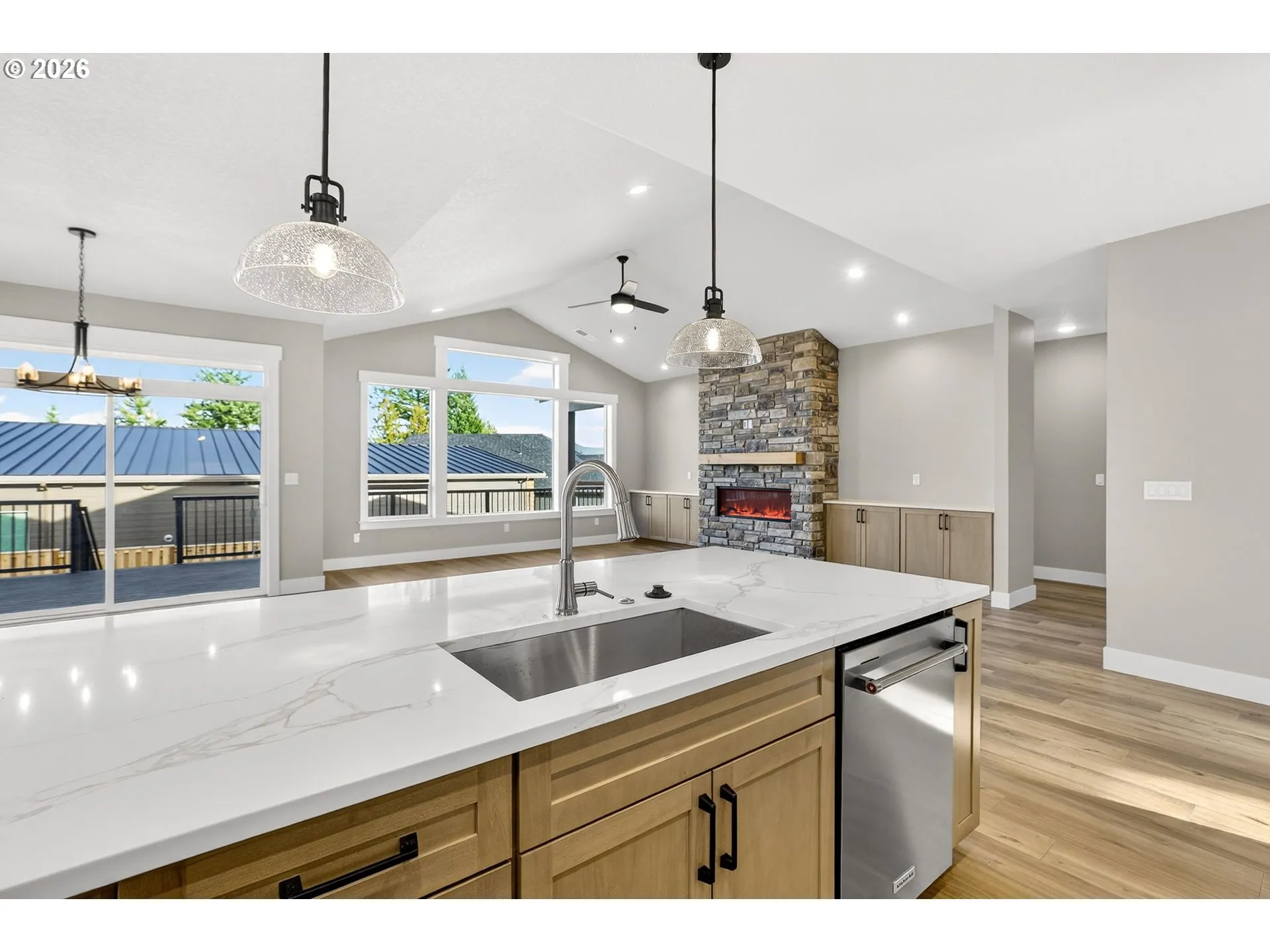 MOVE IN READY! Discover this beautifully maintained one-story home in Hoodview Heights offering a spacious and functional floor plan perfect for modern living. This 3-bedroom, 2-bath home features a stunning vaulted great room with a gas fireplace and durable laminate flooring throughout the main living areas.The open-concept kitchen boasts slab countertops, stainless steel appliances, a gas range, pantry and plenty of cabinet space. The primary suite is a luxurious retreat with a spa-inspired ensuite bath featuring a soaking tub, separate walk-in shower, dual-sink vanity, and a generous walk-in closet.Enjoy the dramatic high ceiling in the entry hall, enhancing the home’s light and airy ambiance. Outside, the landscaped front and backyard are complete with a sprinkler system and a fully fenced backyard featuring a large covered deck—perfect for outdoor entertaining year-round. Additional highlights include a spacious 3-car tandem garage offering extra storage or hobby space. Start your home tour at here at our hosted home! Open Saturdays & Sundays 1:00 PM – 4:00 PM