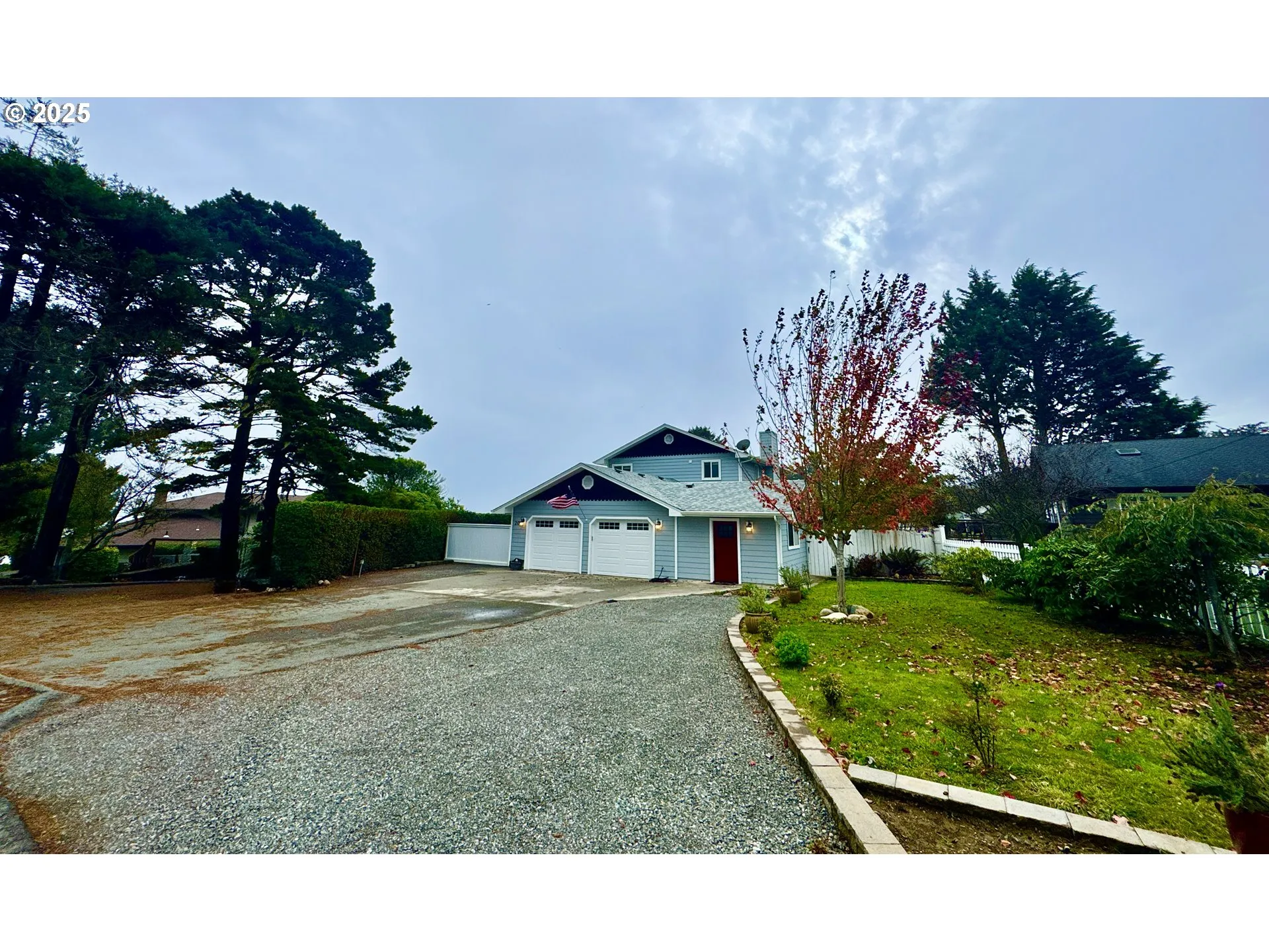 IMPRESSIVE OCEAN AND RIVER VIEWS HOME. Sit back on your deck and watch the commercial and sport boats head out to sea, watch the seals sunbath on the bell and whistle, listen to the crashing waves on those stormy days. Beautiful, fun and exciting views of the Pacific Ocean and the Mouth of the Chetco River. It also overlooks a part of the Port of Brookings Harbor and the beautiful mountains. This is a very unique and special home. VERY private neighborhood, only one house back from the ocean. This 3 Bedroom 2 ½ bath with an extra room that could easily be a bedroom if needed. This home has a wonderful homie feel. The kitchen has a gorgeous extra large propane stove for all your fancy cooking needs, plus the propane tank is owned by the seller. Granite countertops, knotty pine ceiling and floors throughout including luxury vinyl plank flooring as well. Master bedroom is on the main floor and has french doors opening up to the deck. Upstairs is where the main living happens. Sit back and watch Tv or read a book with the stunning views in the background. Kitchen and half bathroom is upstairs with an additional bedroom and a wood fireplace . Yard is completely fenced for all your furry friends with fancy white vinyl fencing. Home has a handicap stair lift which is handy for taking groceries upstairs as well as helping the handicapped. It has an extra large attached shop/garage with two NEW garage doors. This is a must see. Don’t let this one go without seeing it. Call your agent for more details. Sellers have had the HVAC system looked at by Sean with Airtech, also has had the roof cleaned and treated for moss.