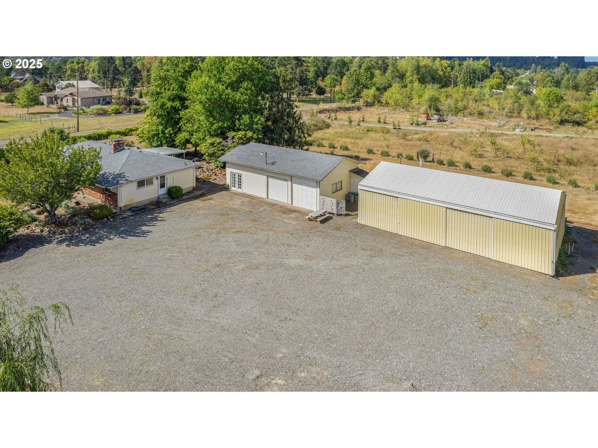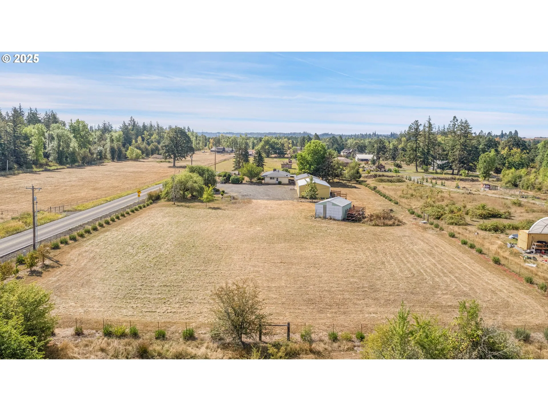 Heaven, Homesteading & Hobbies! Just west of the Clackamas River and only five minutes from Barton Park, this rural retreat offers both comfort and a plethora of opportunity. The level, fully fenced 2.35 acres include a 42’x24’ detached garage with finished areas adaptable to your needs, a 48’x30’ shop with a hydraulic car lift, and a 24’x20’ pole barn that can serve as storage or be converted to livestock use. The 1972 single-level ranch home spans nearly 2,000 square feet with 3 bedrooms, 2 baths, and generously-sized common spaces, including a large living room and family room. The master is ample and features double closets. There’s a full bath next to the laundry area, so no traipsing through the house to take care of business. Updates include vinyl windows, French Doors to the rear patio, a newer roof, and fiber-cement siding. Outside, you’ll find funky rural yard art, fruit trees, grapes, blueberries, and a greenhouse, along with two ponds—one smaller pond by the covered rear patio and a larger pond at the front tucked under some graceful weeping willows. With space to garden, raise animals, or pursue hobbies, this property provides the freedom of country living while remaining close enough for an easy commute. All appliances stay.