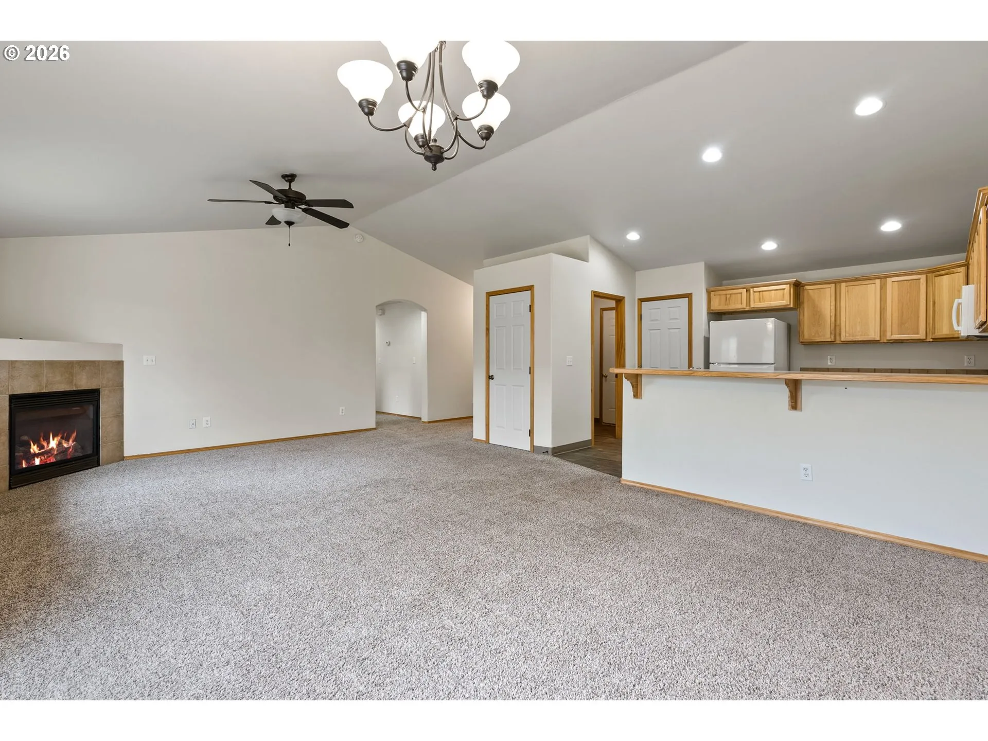 Located on a quiet residential cul-de-sac just minutes from the heart of Redmond, this well-maintained single-level home offers a thoughtful layout, comfortable living spaces, and excellent access to everyday amenities and Central Oregon recreation. The open-concept great room features vaulted ceilings and a cozy gas fireplace, creating a welcoming space for daily living and casual gatherings. Oversized windows throughout the home allow for abundant natural light, enhancing the bright and airy feel of the interior. The kitchen is both functional and inviting, offering natural wood cabinetry, tile backsplash, an eating bar, gas appliances, a pantry, and ample storage. The layout flows seamlessly into the dining and living areas, supporting ease of use and connection. The primary suite provides a private retreat with a vaulted ceiling, a spacious walk-in closet complete with built-in organizers, and an en-suite bathroom. Two additional bedrooms offer flexibility for guests, home office space, or family needs. A separate laundry room adds everyday convenience. Step outside through the sliding glass door from the great room to a patio and a large fenced backyard, offering privacy and usable outdoor space for relaxing, entertaining, or play. The location is a key highlight, with quick access to Redmond Town Center, grocery stores, coffee shops, restaurants, breweries, and neighborhood services. Outdoor enthusiasts will appreciate proximity to Quince Park, Dry Canyon Park and Trail System, the Deschutes River, and Cline Falls State Scenic Viewpoint. With an easy commute to Bend via US-97, this home is ideal for Bend commuters seeking a balance of affordability, space, and lifestyle. Convenient access to major Redmond and Bend employers further supports long-term livability and value. This move-in ready property presents an excellent opportunity to enjoy Central Oregon living in a quiet, well-connected neighborhood.