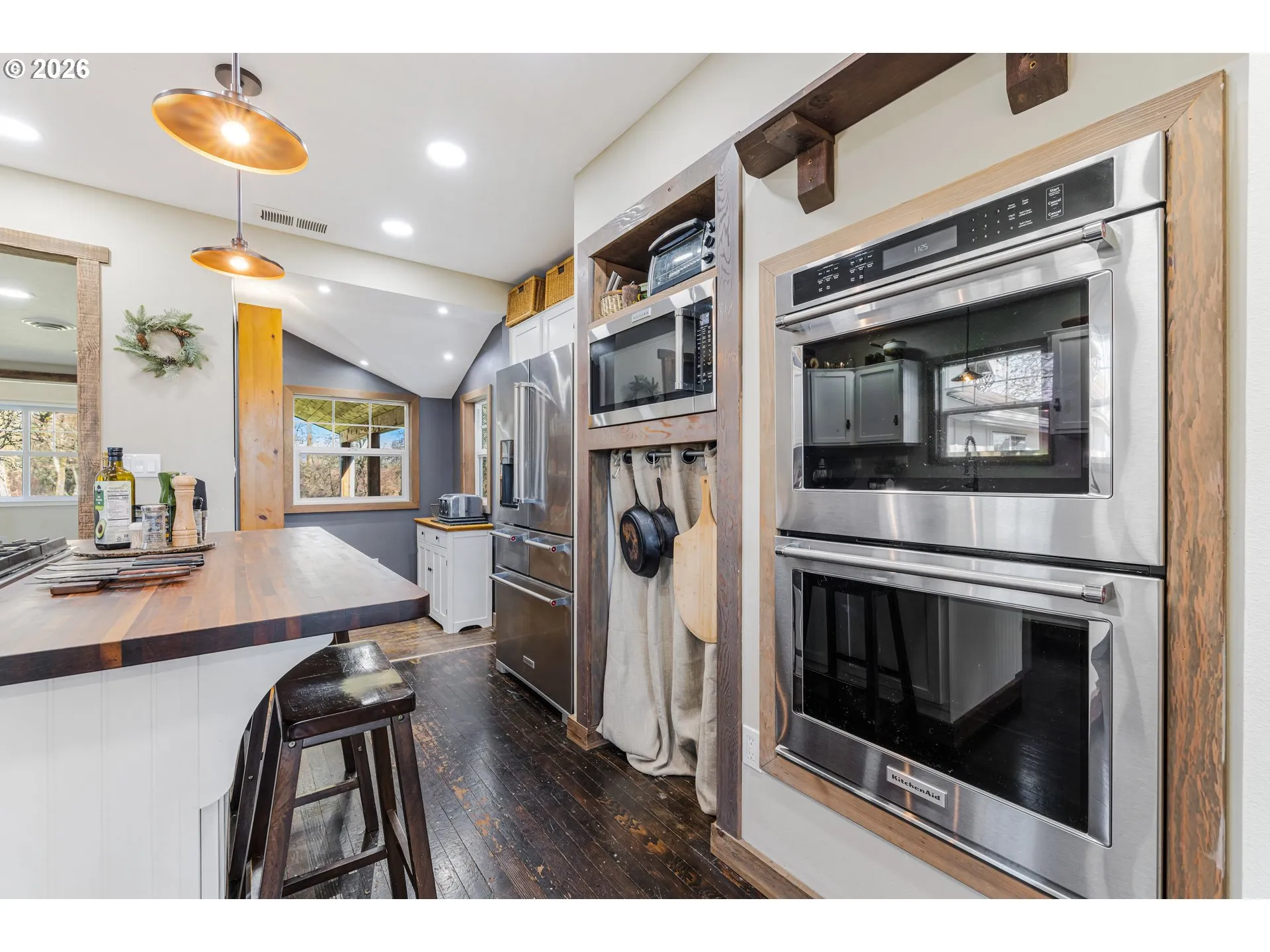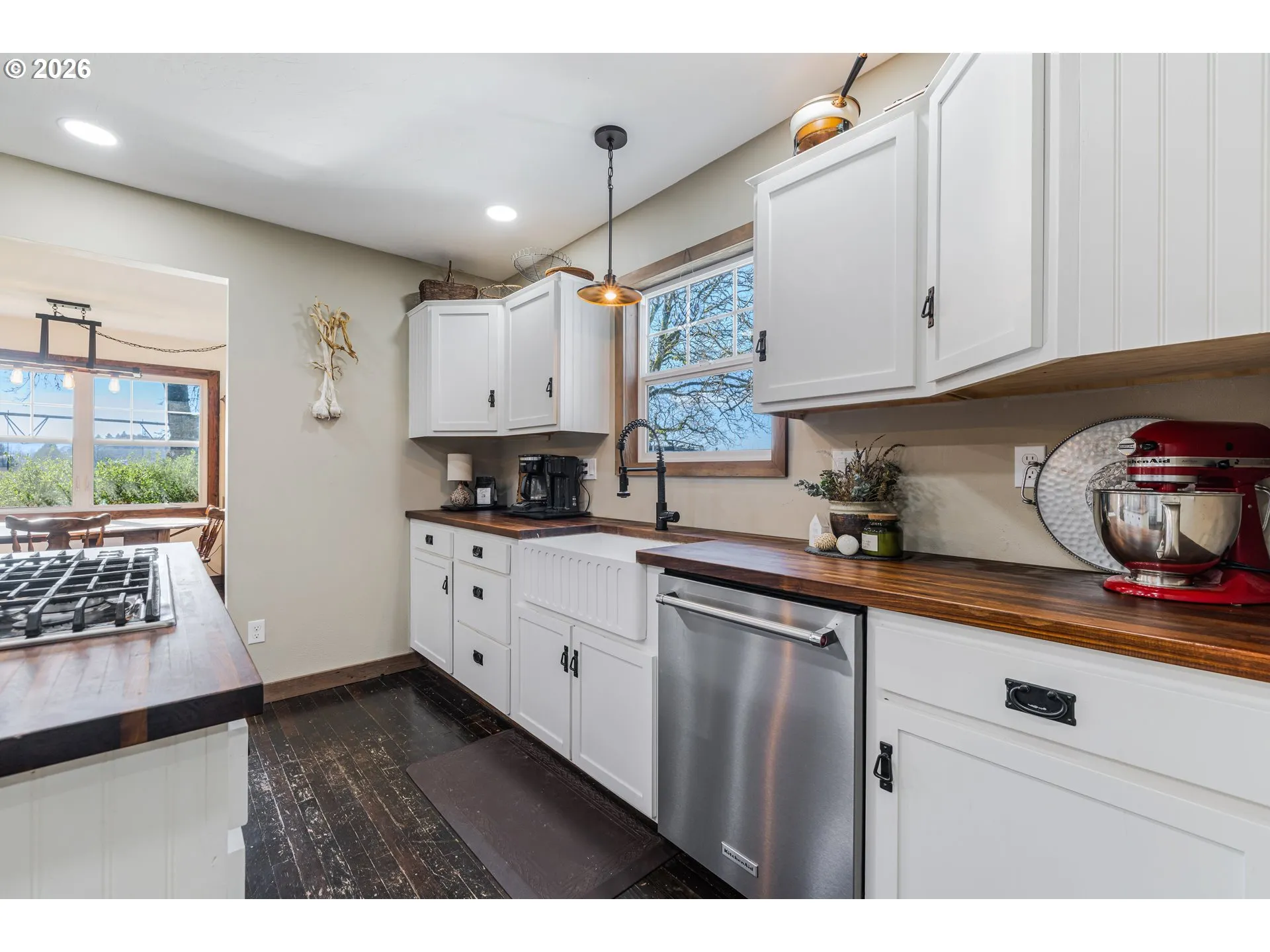 Set on 20 picturesque acres, this exceptional property offers a rare blend of privacy, functionality, and natural beauty – an ideal haven for animal lovers and hobby farmers alike. Mill Creek meanders through the property, creating a peaceful setting, while easy access to the Yamhill River adds to the appeal. Water rights further enhance the long term value and versatility of the property. Designed with equestrian use in mind, the property features a 5-stall barn with a tack room, a round pen, and is fully fenced and cross-fenced, allowing for efficient pasture management and ease of use. Additional infrastructure includes a chicken coop, 3 loafing sheds, greenhouse, raised beds, additional garden space, and established fruit trees, making this property well suited for a self-sustaining lifestyle. The two-level, 3-bedroom, 3-bathroom home offers comfortable living with a practical and welcoming layout. The family room features vaulted ceilings, creating an open feel that enhances the main living space. Recent improvements include a new roof and new windows, along with updated bathrooms with tile flooring. The chef’s kitchen features a gas range with dual ovens, complemented by a large central island and wood countertops, offering a well-appointed space designed for both everyday living and entertaining. The home is well equipped for year-round comfort including two furnaces and heat pumps, as well as two hot water heaters, providing efficiency and reliability. Thoughtfully maintained and well laid out, this residence offers a solid blend of comfort, function, and modern updates. Whether you’re seeking a turnkey equestrian setup, a peaceful country retreat, or a well-equipped hobby farm, this property delivers the space, infrastructure, and setting to support a rural lifestyle without sacrificing convenience.