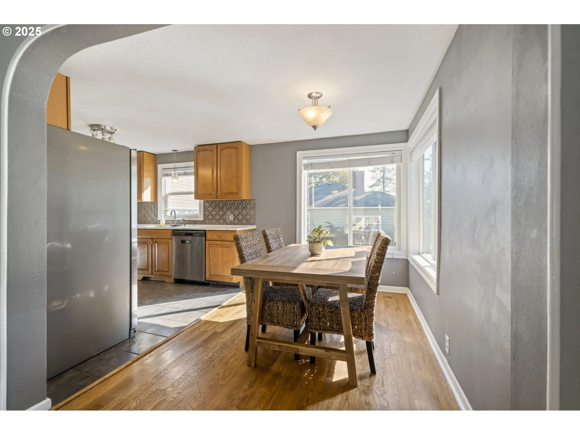 Life feels just a little easier in this great Bungalow on Buckner Lane. This 3 bedroom, 2 bath updated 1947 home in the Barclay Hills neighborhood sits on a roomy quarter acre fenced lot with established fruit trees and plenty of space for gardening and leisure. The covered back patio is perfect for morning coffee, evening barbecues, or just sitting out and enjoying a quiet moment. Inside you’ll find hardwood floors, a comfortable layout, and plenty of natural light that makes the home feel warm and inviting. The main floor offers a convenient primary bedroom, while two more bedrooms upstairs provide flexibility for family, guests, or a home office. The kitchen flows easily into the dining and living areas, making everyday living simple and practical. One of the standout features here is the oversized garage/shop. With plumbing and power already in place, it’s ready to be whatever you need – an ADU, a serious workshop, or just a great space to spread out your projects. All of this in a neighborhood that balances the best of Oregon City living – quiet streets, easy access, and the sense of space that makes home feel like home.