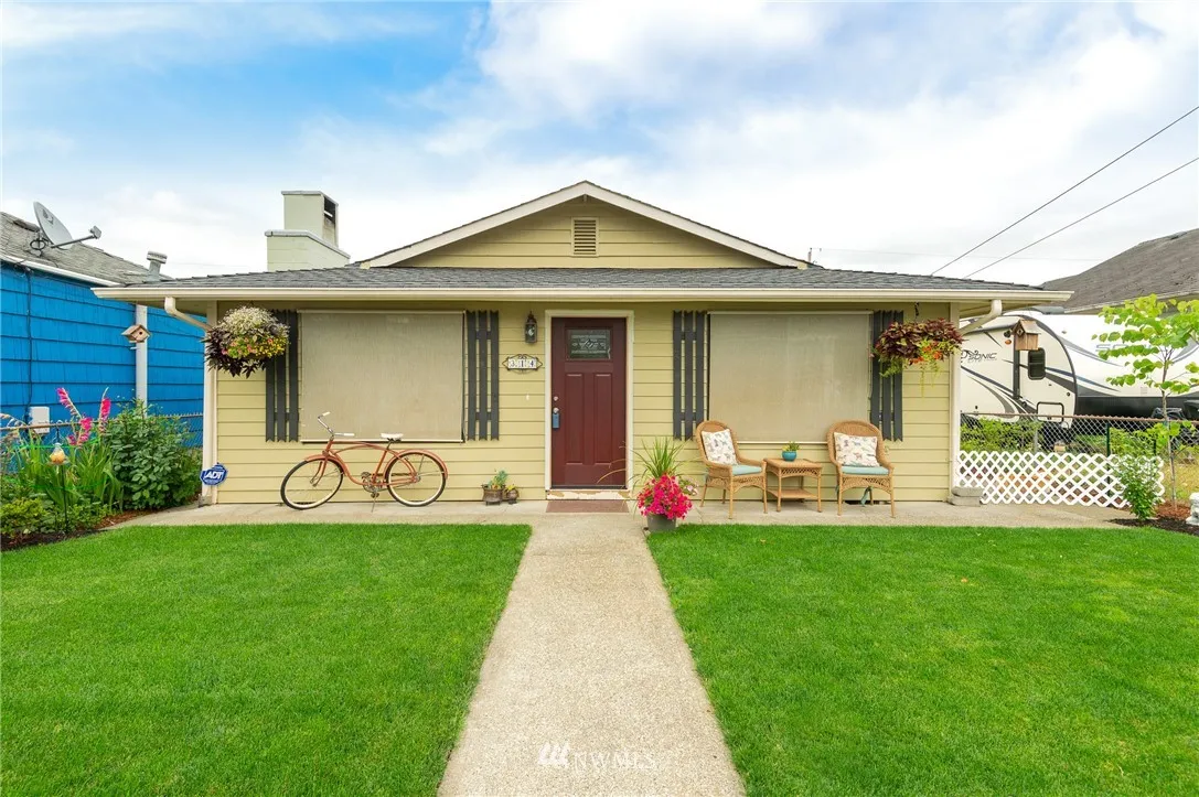 Nice sized living room with gas fireplace, Vinyl windows, New 40 year roof, new electrical panel, fresh interior and exterior paint, newer: hot water tank and washer/dryer, interior doors, blinds. Large yard w patio perfect for summer bbq's. Close to town, shopping and schools. Newer Lawn mower included. Perfect starter or investment home.