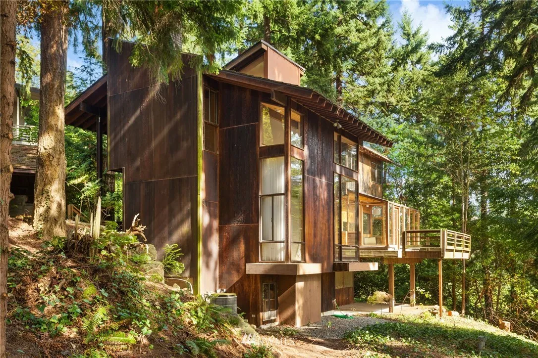 +"PublicRemarks": "Location!Welcome home to this sought after home located in Medina and the Bellevue Schools.A mid-century inspired custom one owner home with 3 current bedroom spaces,1.5 baths,on a shy 1/2 acre lot in Medina proper.Soaring vaulted ceilings w/exposed beams and spiral staircase spans all three floors.Unfinished basement with high ceilings and plumbed great for bedroom/rec-room and 3rd bath.Huge windows taking full advantage of the Meydenbauer Bay lake views. Don't skip this one!"
